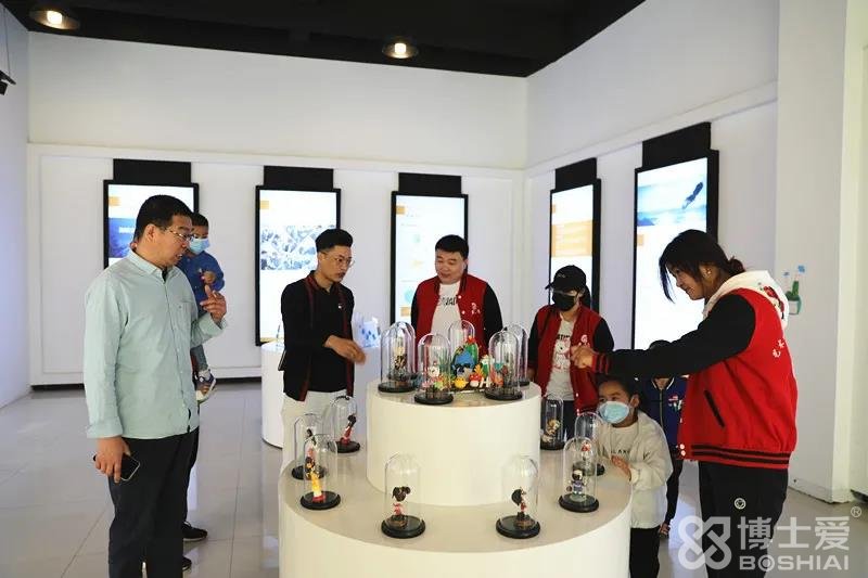 在閆總的陪同下,首先參觀了集團(tuán)產(chǎn)品藝術(shù)展廳,了解博士愛集團(tuán)的企業(yè)文化和發(fā)展歷程。韓總熱情地向到訪師生們介紹各種粘土精致手工作品,并與燕兒飛藝術(shù)聯(lián)盟的美術(shù)老師們就粘土手工課做了深入交流,同時(shí)希望燕兒飛藝術(shù)聯(lián)盟能夠多來集團(tuán)交流,促成彼此的共同進(jìn)步和合作。
