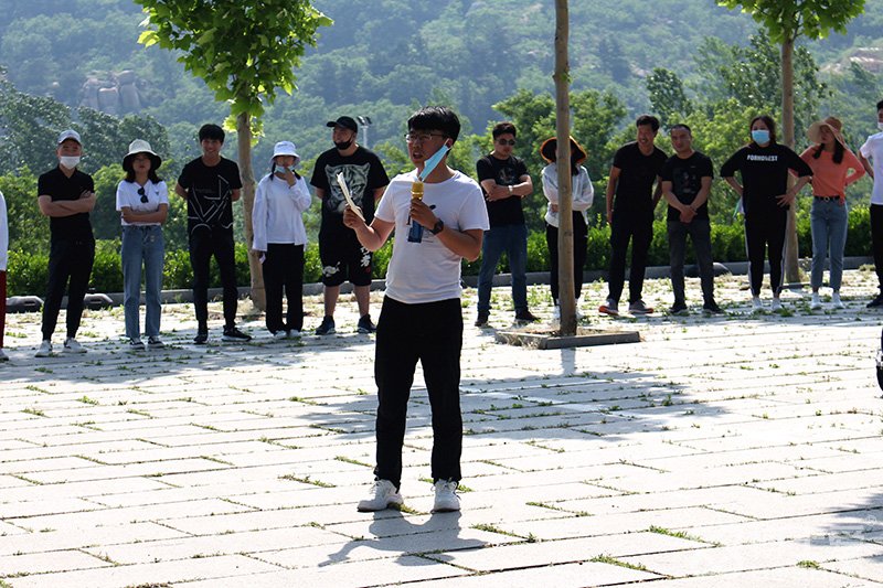 到達(dá)蒙山風(fēng)景區(qū)后,在臨沂雨林精靈文具有限公司總經(jīng)理高會(huì)的主持下,大家進(jìn)行了一場(chǎng)別開(kāi)生面的“熱身活動(dòng)”。